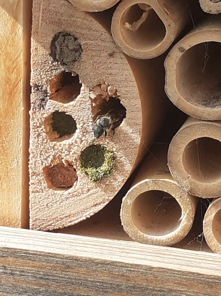 The bee-friendly wildflowers and the catnip are still blooming, bringing new visitors to the bee hotel and providing a late summer picnic for the butterflies. The only difficulty is in persuading the local spiders not to set up webs in such a way as to catch the bees or butterflies.