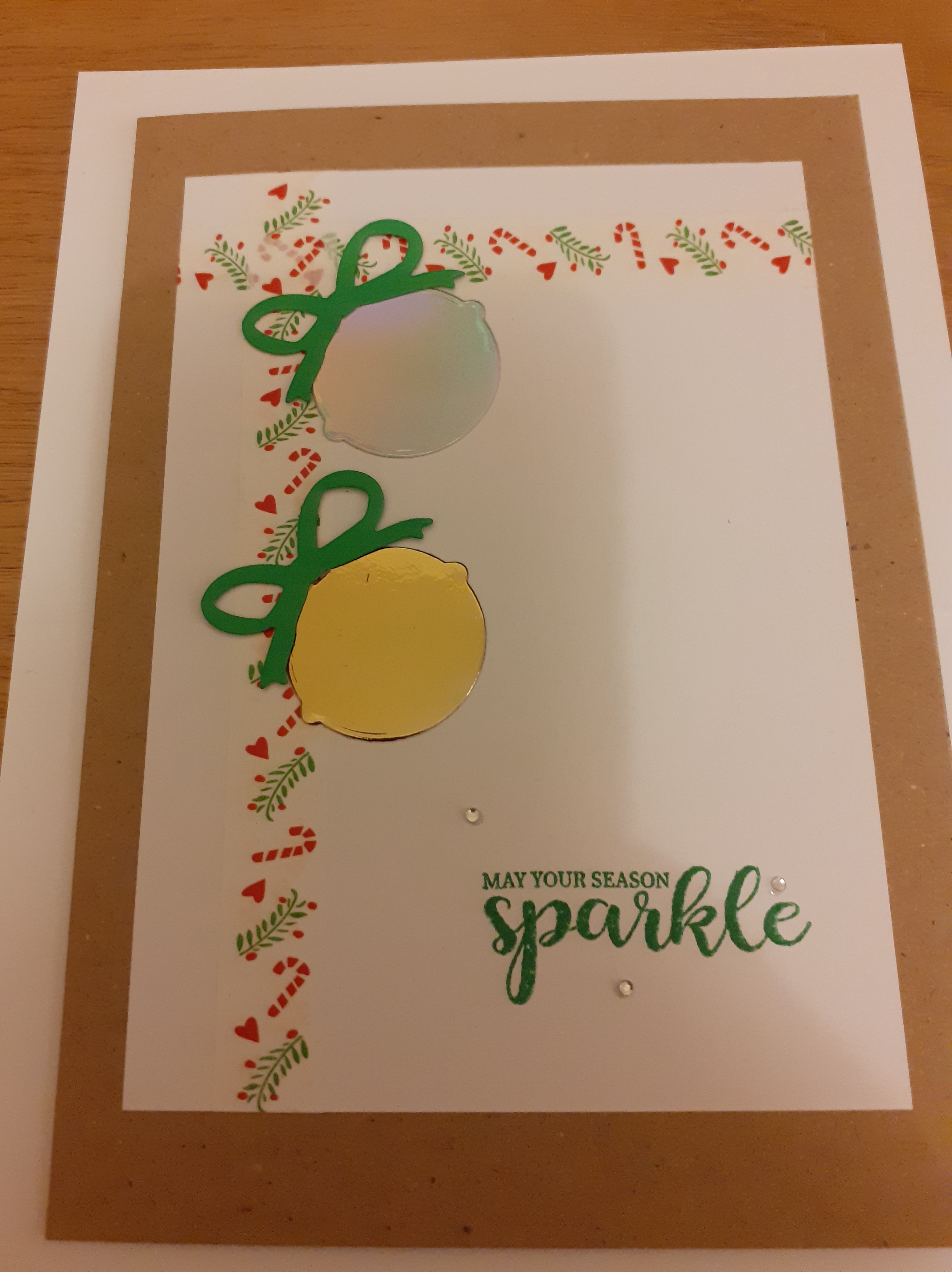 I haven’t tested out all the stamps in this set, mostly because I actually started making cards with them. And with the bauble/bell die that came with it.