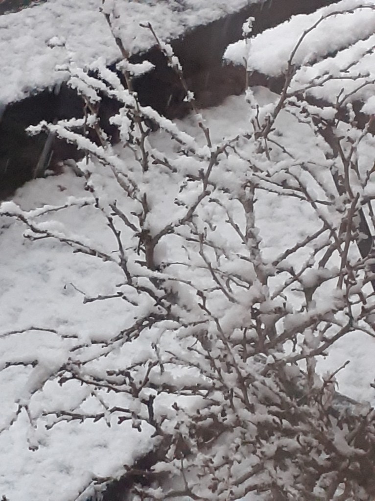 We began January with snow, and we’ve ended it with more. I’ve been a bit concerned that the plants might freeze, but they seem to have survived, so far.