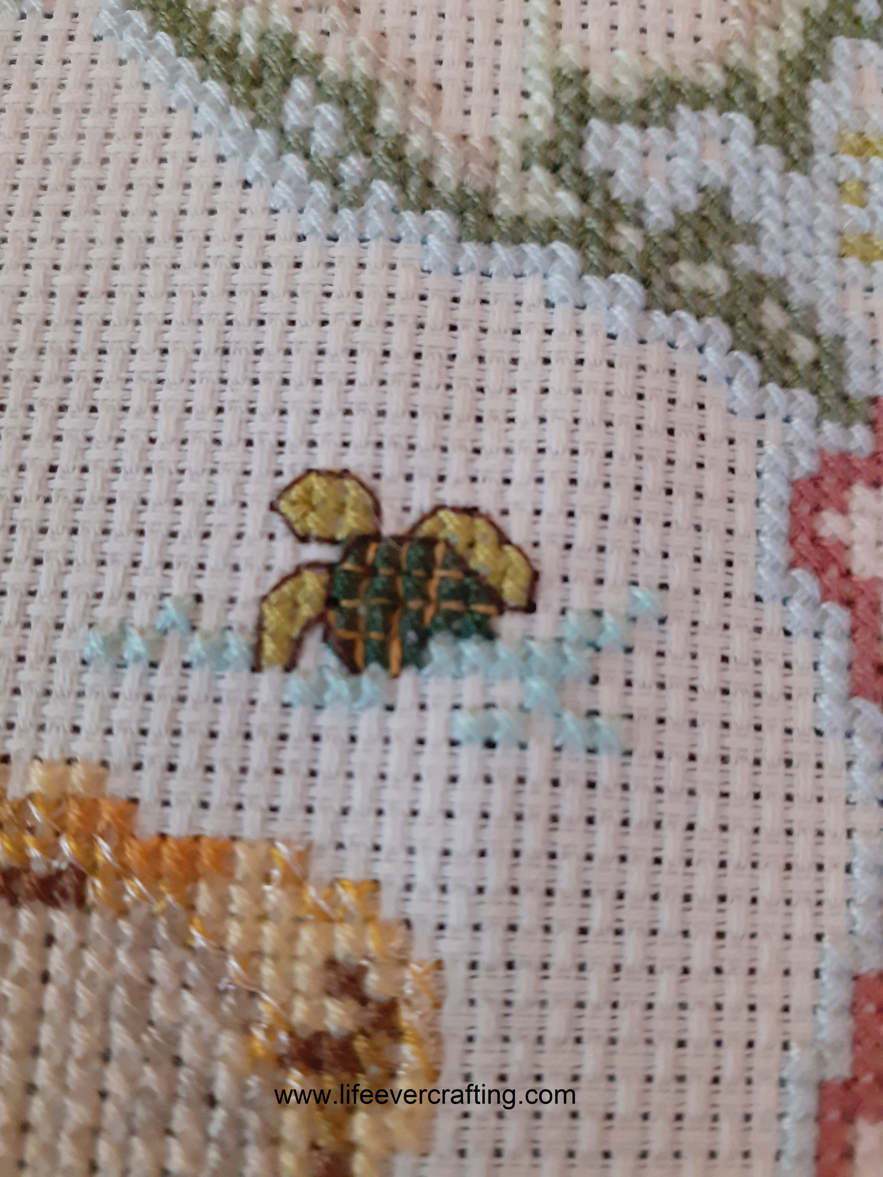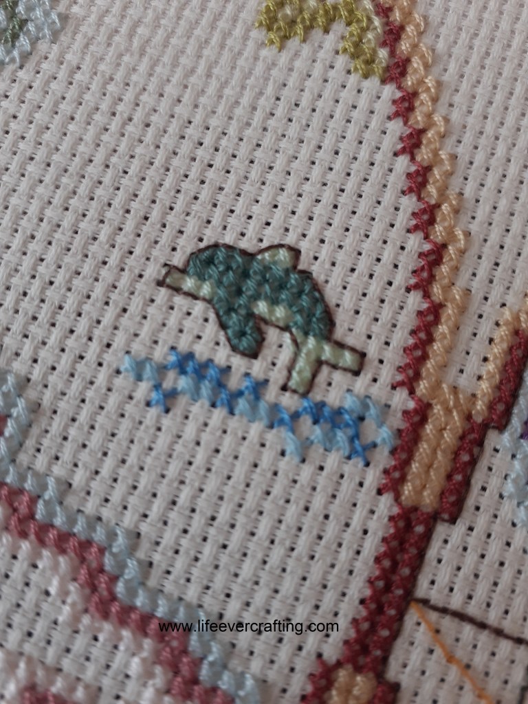 My target for March was to complete the New World section, and so far, with a week to go, I’ve got all the solid stitching done. Just the back-stitching left to go. Which (famous last words) shouldn’t be too difficult to get done before April.