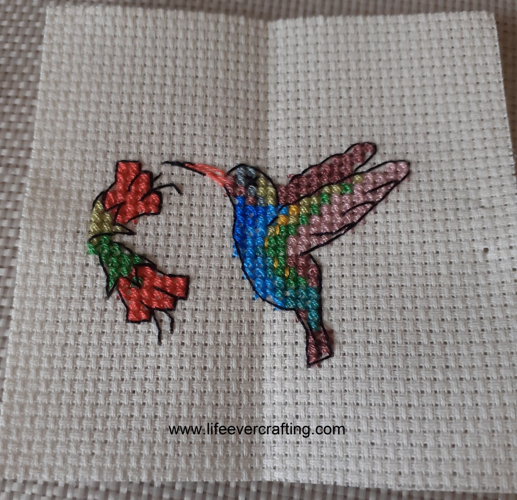 The other day, I pulled out the hummingbird kit. It made me feel quite cheerful, given the sunshine at the time and the bright colours of the threads. That’s another good thing about Mouseloft: it’s easy to tell apart the different thread-shades.
