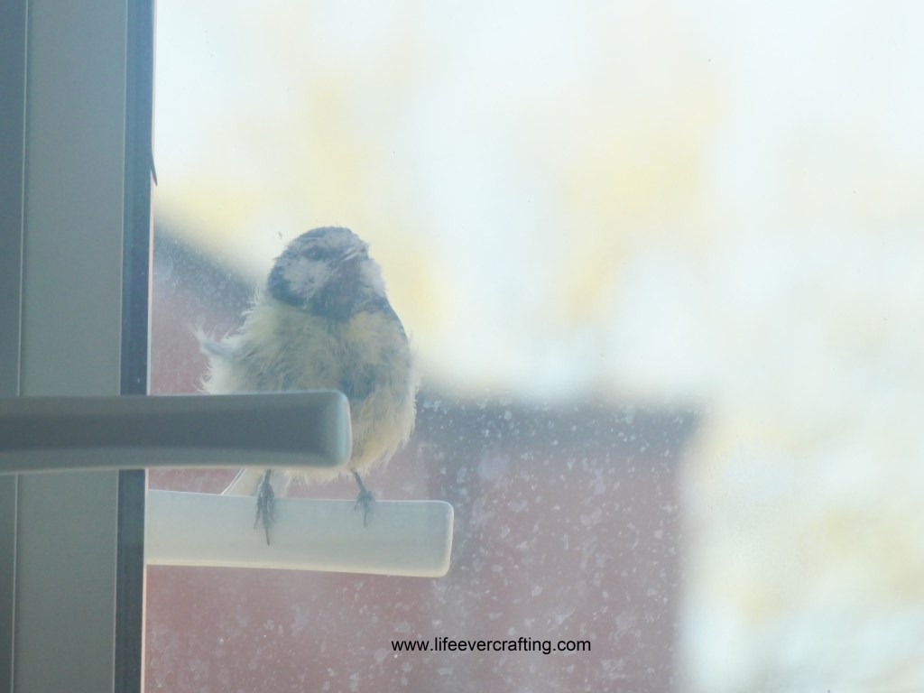 Over the last few months, we’ve added a couple of bird feeders and now a bird bath for the visiting bluetits and the blackbirds which run up and down the railings. One of the tits seems to like balancing on the door handle and looking through the balcony door at us.