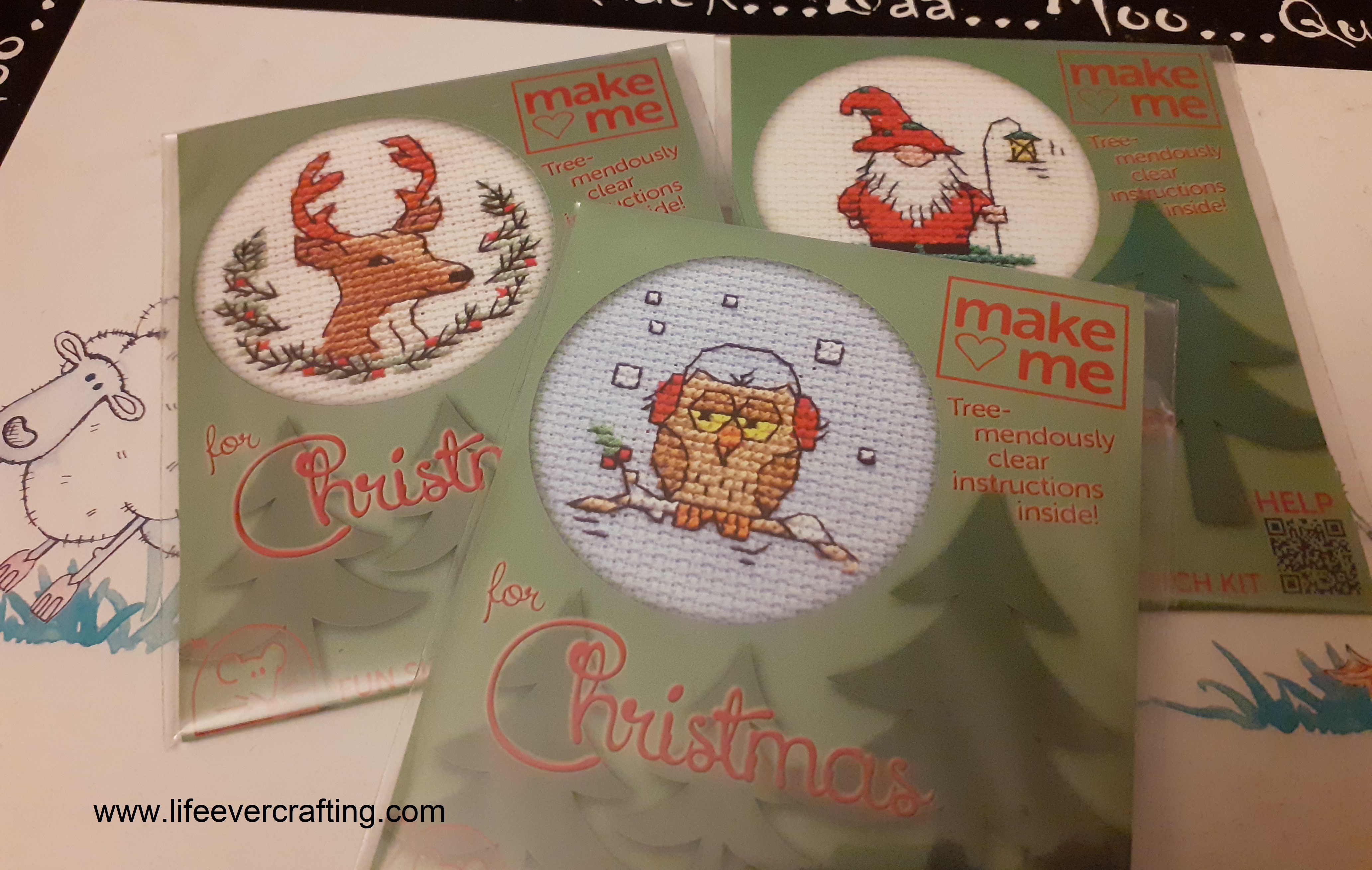 In the meantime, I have these three new Mouseloft kits, ready to stitch, back, and add to the calendar. Fortunately, Mouseloft kits don’t tend to take more than an evening to stitch: I think it’ll take me longer to rummage through my fabric chest to find backing fabric than!