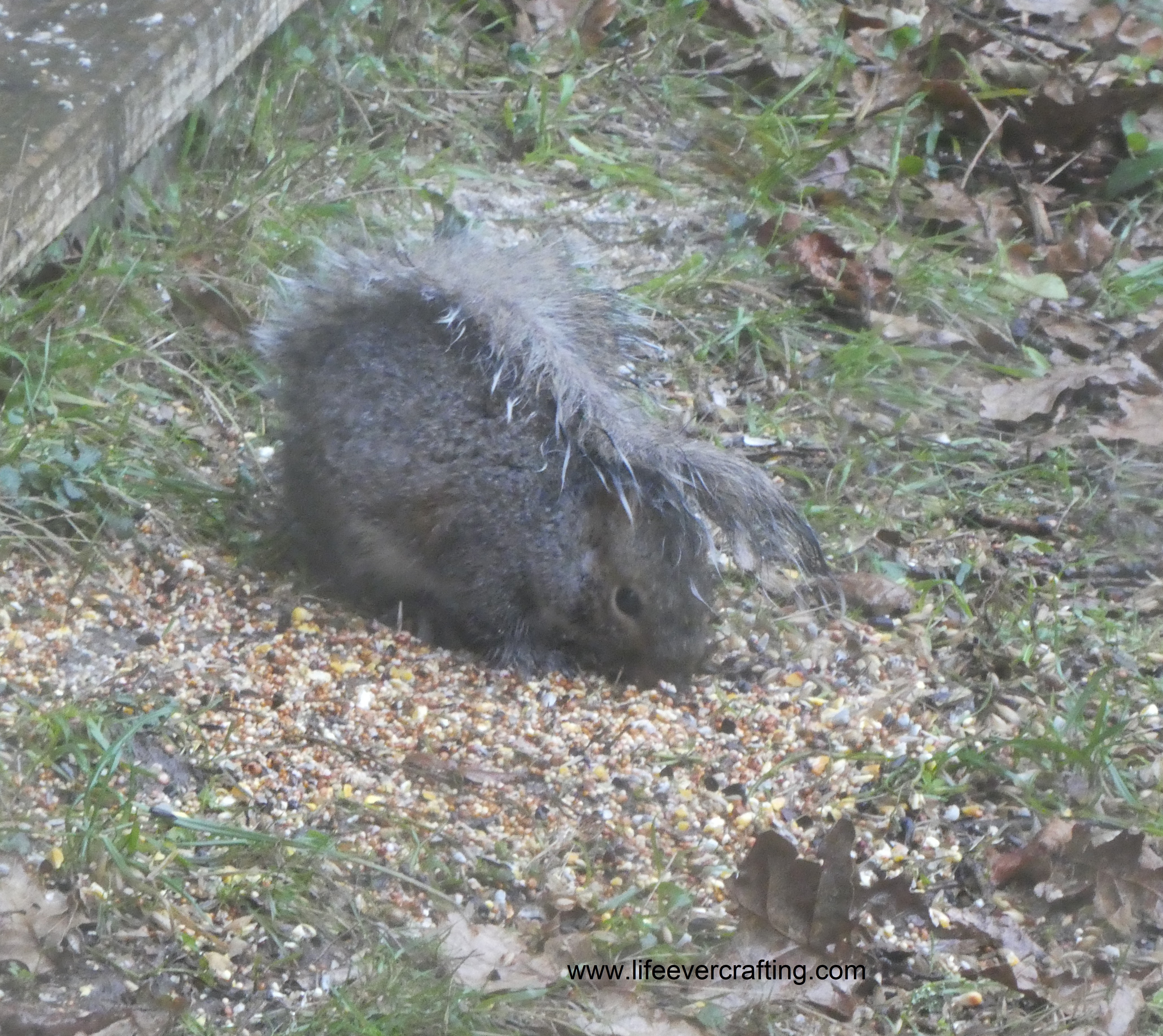 The birds and squirrels, however, have not been bothered in the slightest, with regular visits to the feeders continuing. Even in blowing wind and heavy rain, the squirrels were out feeding and using their tails as a sort of umbrella. There is, it seems, now a coordinated effort from the squirrels to empty the seed feeder as quickly as possible, usually by liberally spreading it onto the ground below and which not even the birds have been able to hoover up. Then they invite the friends in and have a party. This, however, does distract them from the fat ball feeders, which are specifically for the smaller birds such as the tits, robin and blackbirds.