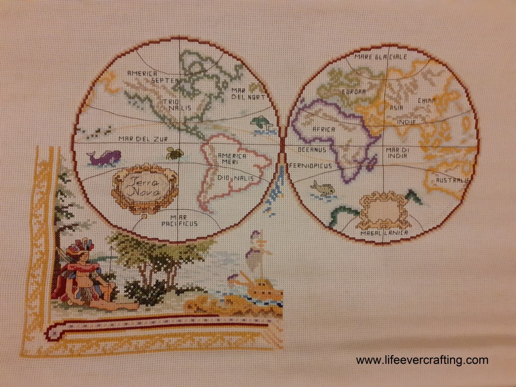 Back in – July, was it? – I packed away my big cross-stich project of a world map because of a move. I’ve only just unpacked it.