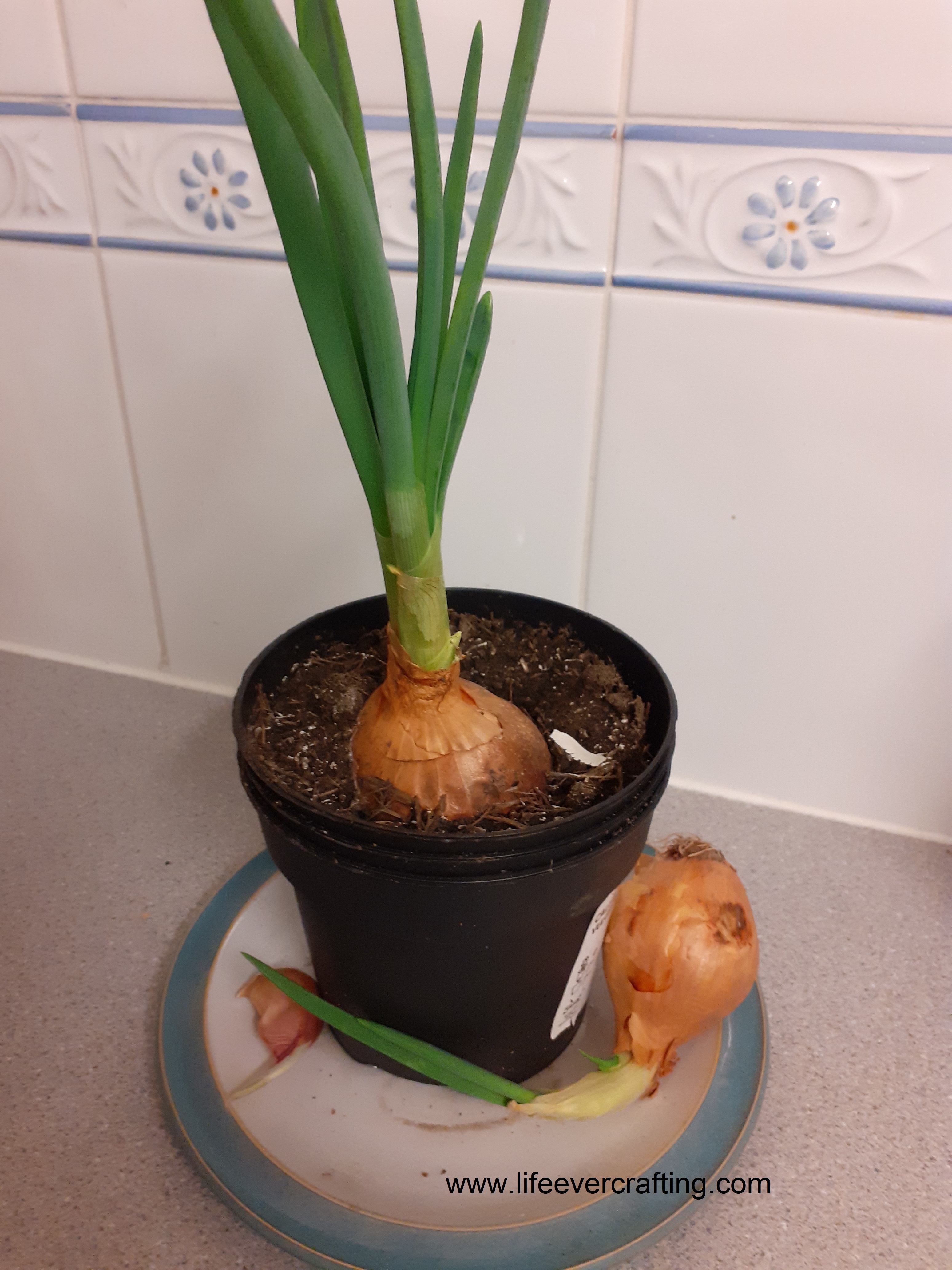 Soon, there’ll be more planters and more bulbs planted, assuming the squirrels leave the daffodils alone, and maybe even a few vegetables. There’s an onion or two sprouting in the kitchen window M wants to try growing properly, along with a garlic clove. They seem quite happy in the window. And fruit bushes, to go with the fig tree.