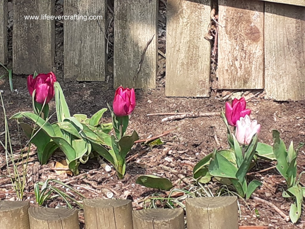 And the other flowers which survived the squirrels’ raids have turned out to be tulips, standing tall in a row.