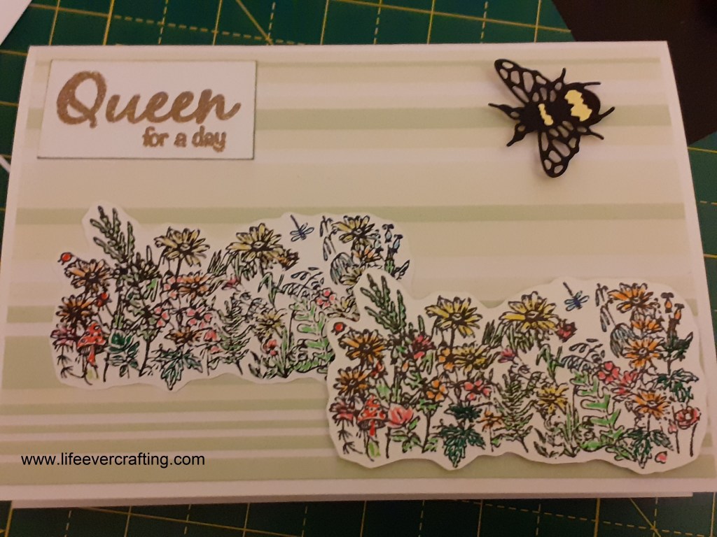Anyway, it used the two wildflower gardens I’d stamped and coloured a few weeks earlier and which I’d been wondering what to do with.