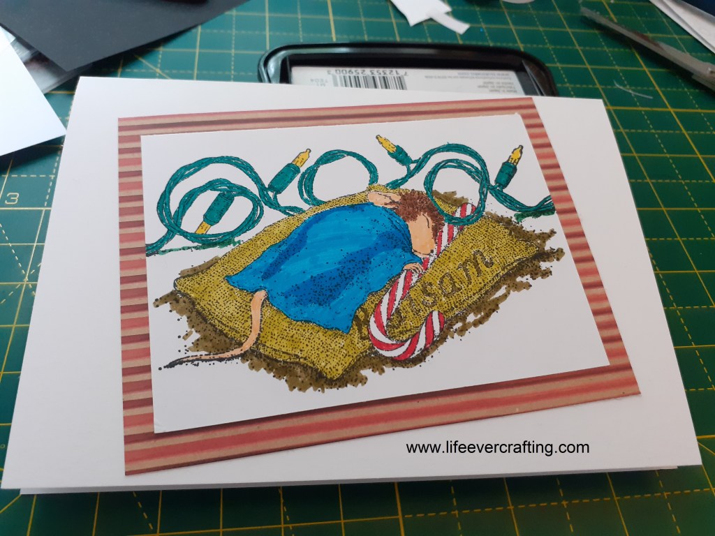 This House Mouse stamp is the Balsam Nap one, though I’ve no idea where I got the backing paper. It just appeared from the Christmas stash.