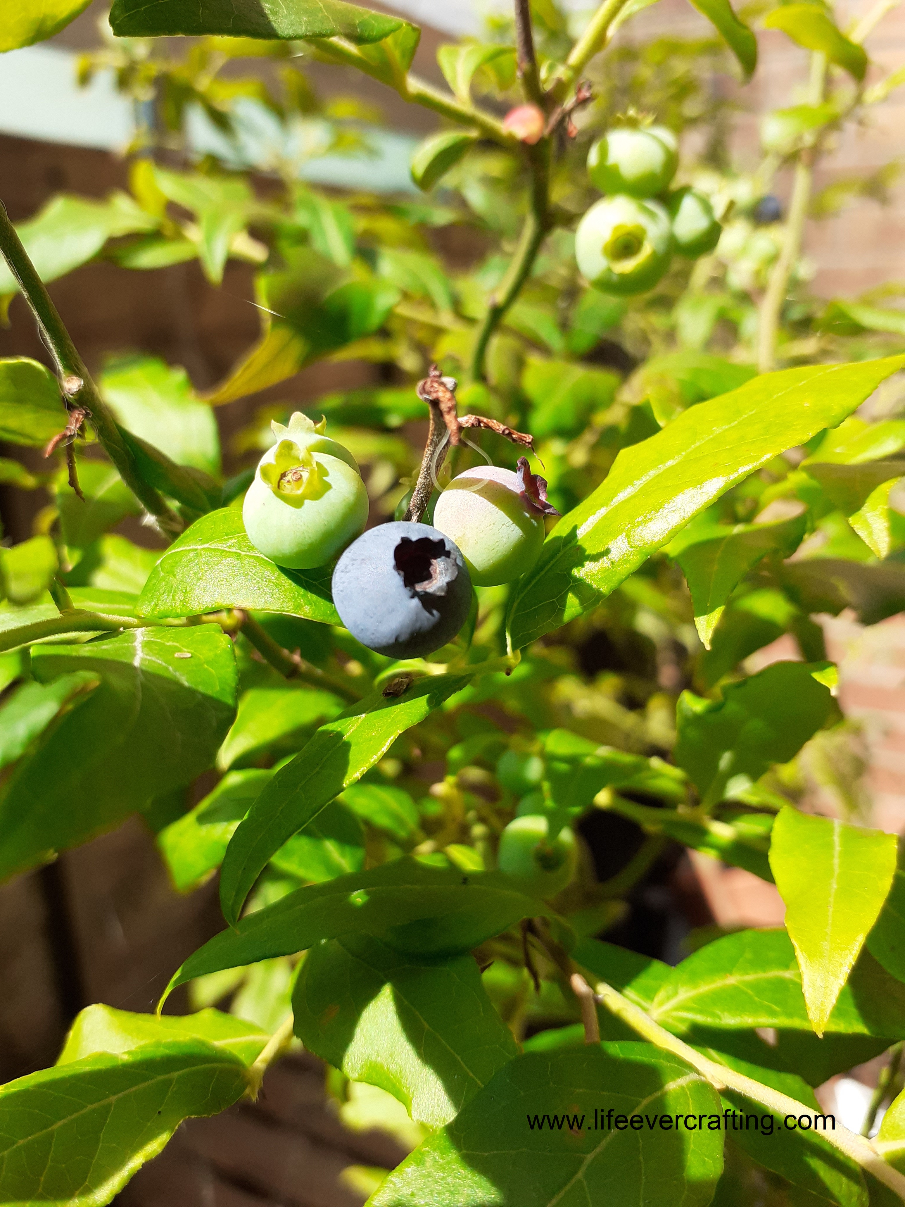 Spiders aside, we have recently been enjoying the fruits of my labour in the garden with our first supply of blueberries from our two plants. Advice given to me by my Grandad years ago means that the first batch of fruit I tend to share with the birds as until a plant is established for a season it tends not to produce much fruit or very tasty fruit. Once a plant is established and comfortable with its surroundings is when you get the best fruit, more naturally. Therefore it seems that whilst I am enjoying the tart little blueberries (as is C) we look forward to the plant maturing more and producing a crop worth protecting from the birds!