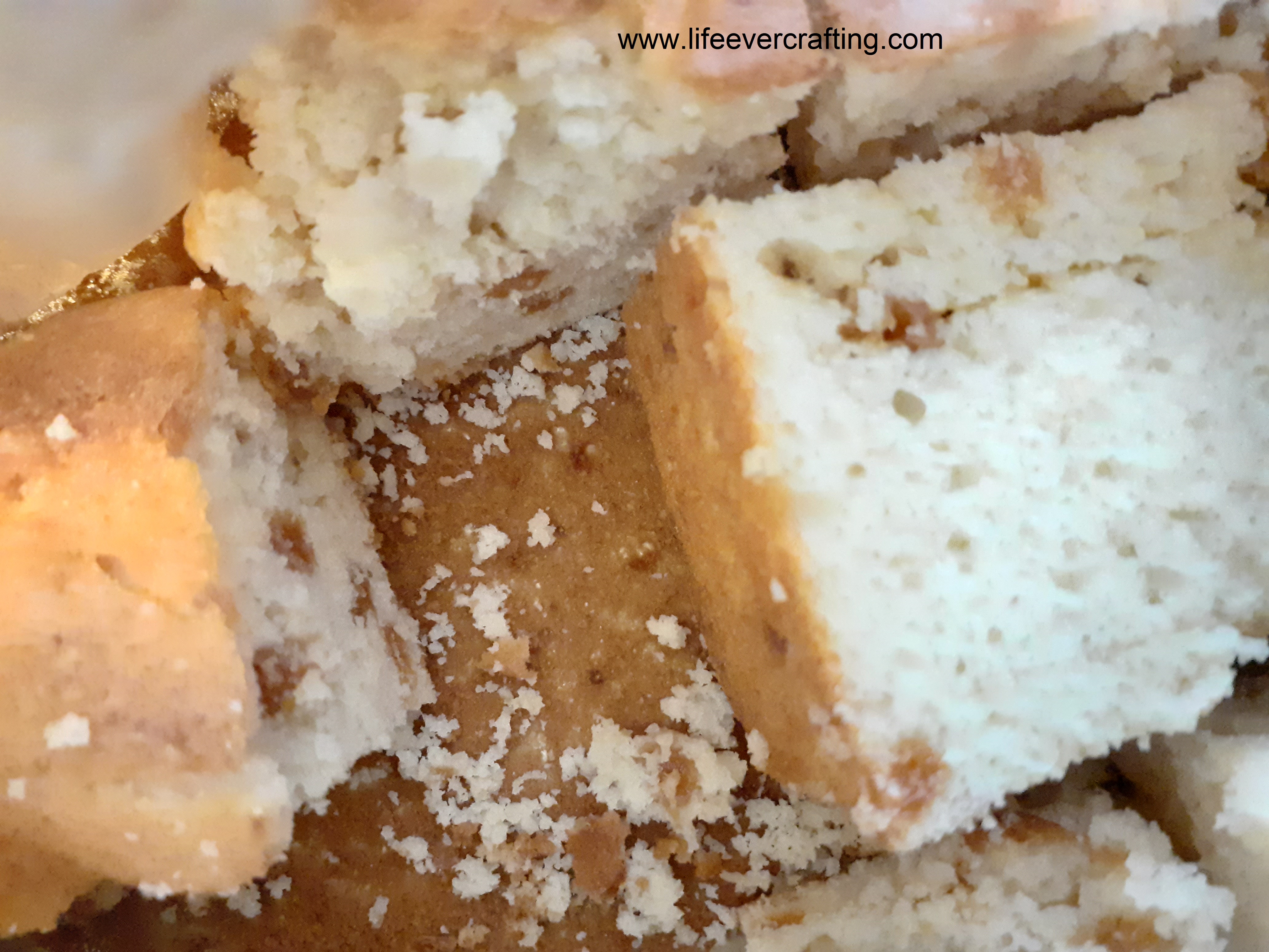 And with all this in mind, when I wanted cake recently, but couldn’t be doing with all the weighing and measuring and faffing, I took the cheat’s option: a Wright’s cake-mix. Very simple: tip the mix into a bowl, add the specified oil and water, stir thoroughly, bake for however long it says.