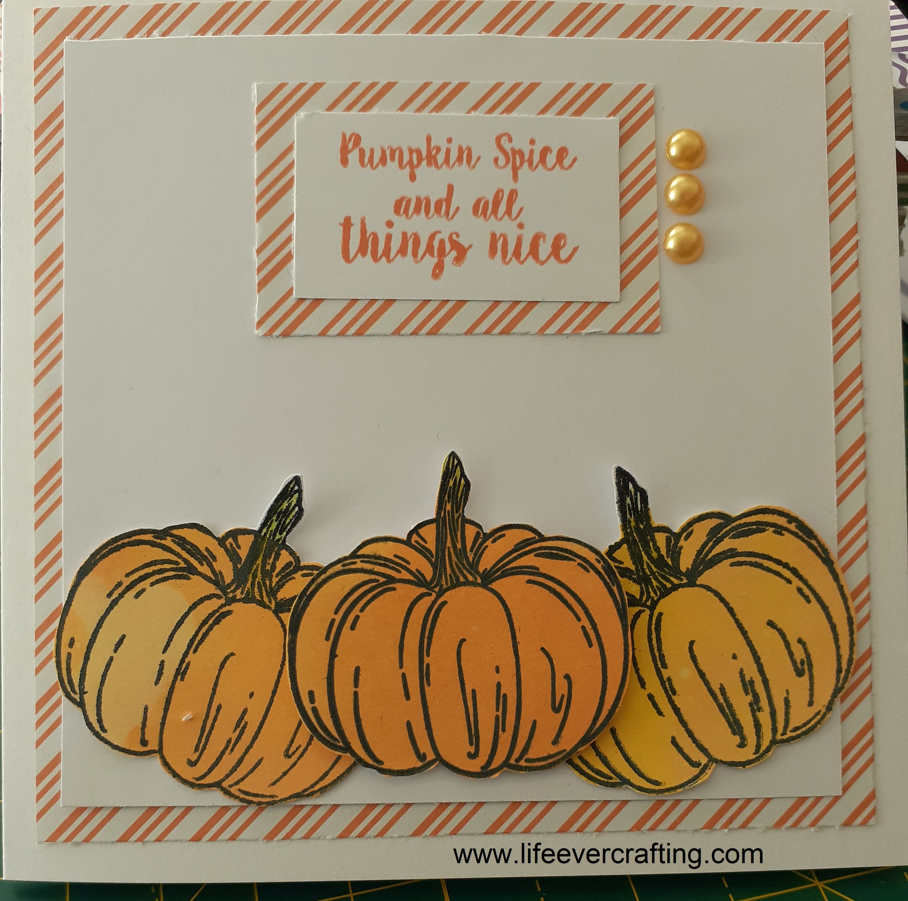 However, I finally managed to use one of the autumnal pumpkin sets (Autumn Blessings from Simply Cards & Papercraft 220): quite a simple card, just a bit of stamping, colouring and cutting, and I wondered why it had taken me so long to do something with it. Perhaps it was trying too hard to have perfect cards for recipients and not being able to think of someone who’d really appreciate such a card.