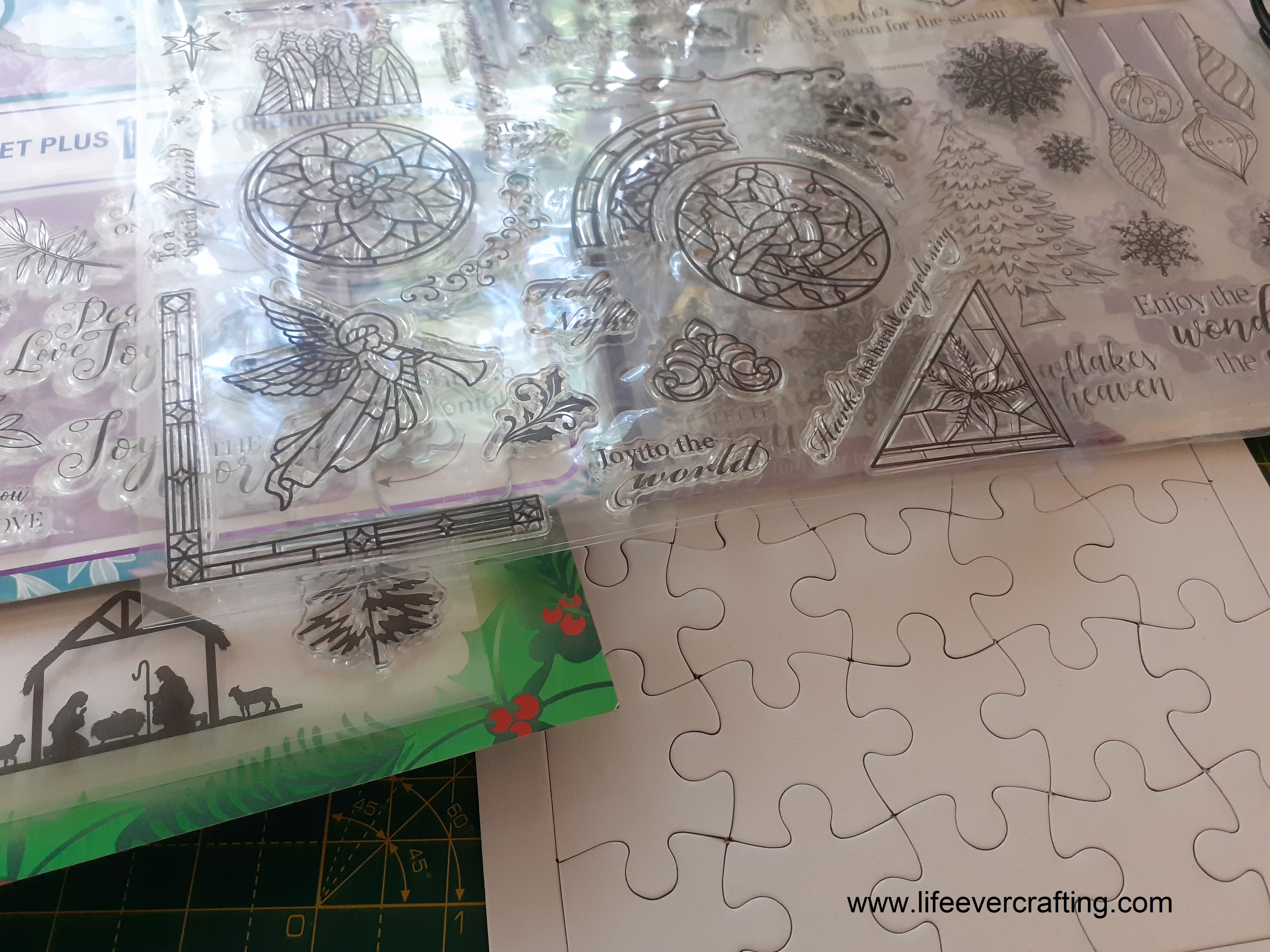 Fortunately, I found 25-piece blank jigsaws on eBay, and which came in packs of three. Which means, if I don’t go wrong and need to try again with the first picture, I can make several jigsaws so the same image doesn’t turn up year after year. I still need to work out the best medium for adding colour to the jigsaws: they’ve got a slightly shiny surface, so I expect Stazon will be the ink for outlines. But I’m not sure for colour. Mind you, I’m not sure what the final image will be either. Still need to work that out, too.