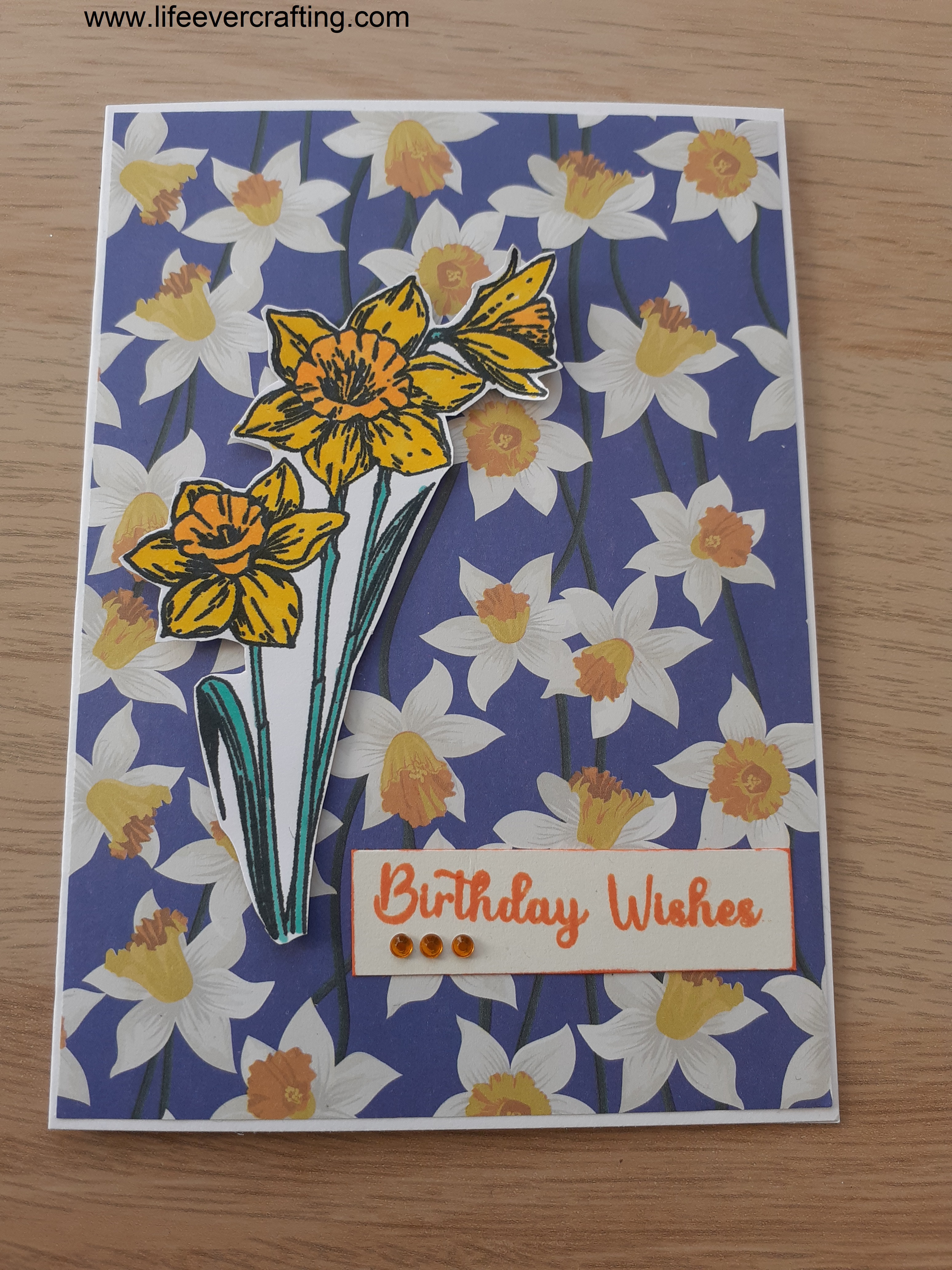 The first of the daffodil cards, made with Daffodil Dreams from Simply Cards & Papercraft 240. It also came with some pretty papers, such as the one I used here.