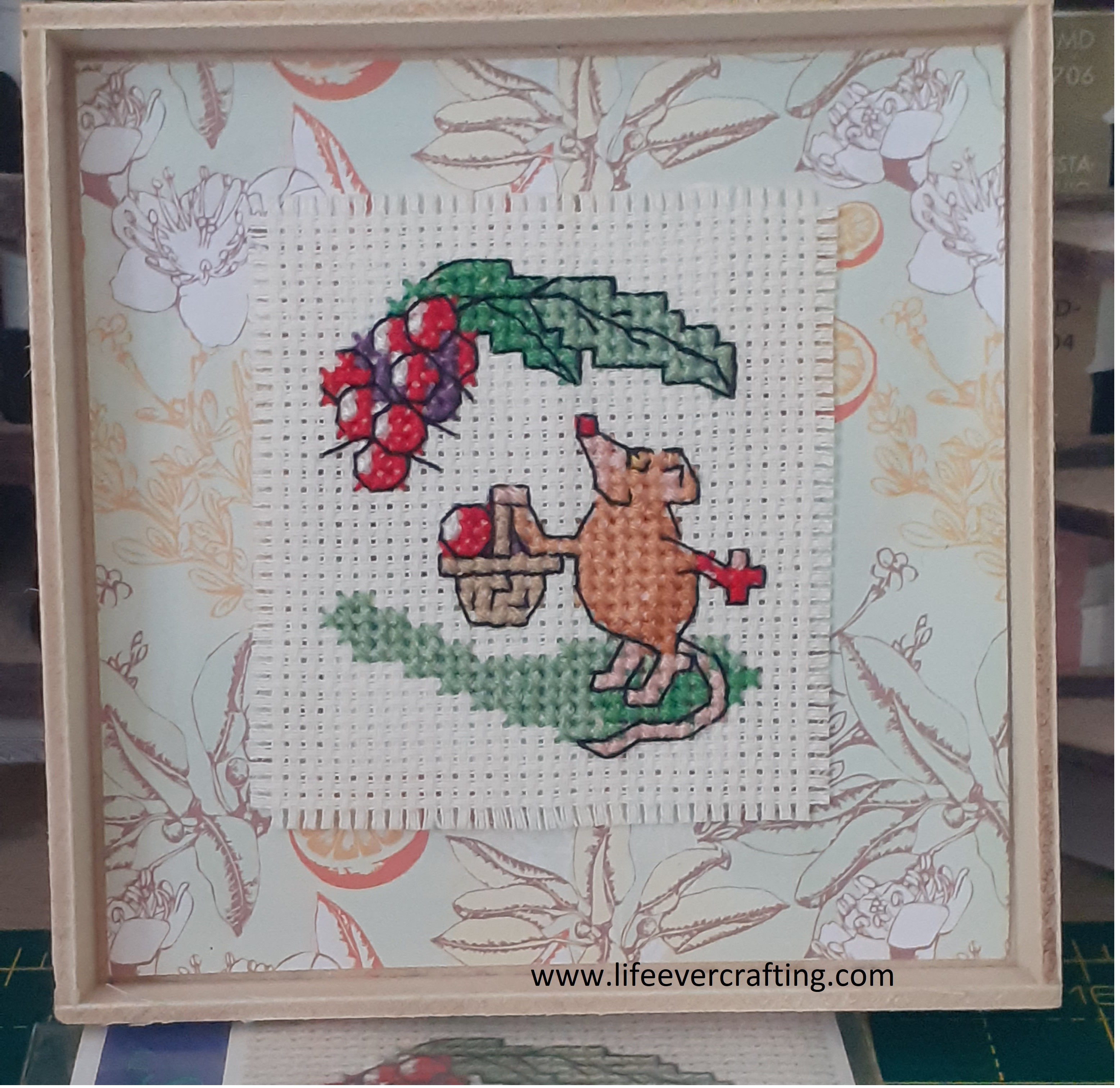 I’ve always liked the Mouseloft kits, since I first found them. One of a summer hedgehog is what got me back into cross-stitching, and I’ve completed quite a lot of them over the years. The blackberrying mouse took me a couple of hours, which is one of the things I like about Mouseloft. They aren’t long or difficult patterns, nor do they have lots of similar shades to separate. Unlike the map. Which is why that one’s on hold.