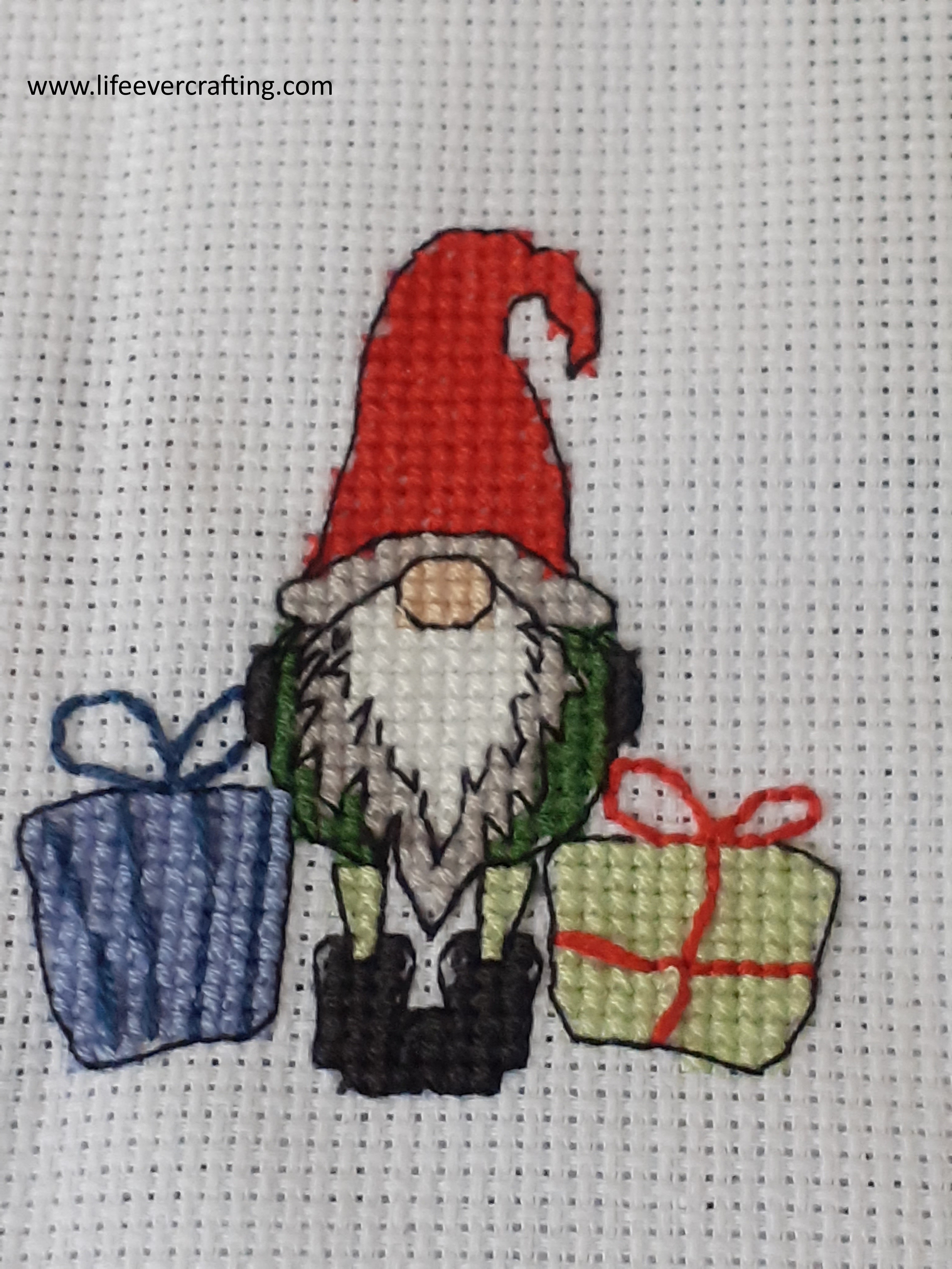 The other issue I had with this, which admittedly I really should have seen coming from the image on the box, was all the white for the snowman. White on white. Never easy to stitch, and who thought that was a good idea?! Especially since you’ll likely start from the centre of the image, where all that white is. Why not a different colour for the aida? And then there was separating the white from the off-white. Let’s just say this wasn’t a favourite pattern (but it does sort of match a stamp, so I have ideas for the card).