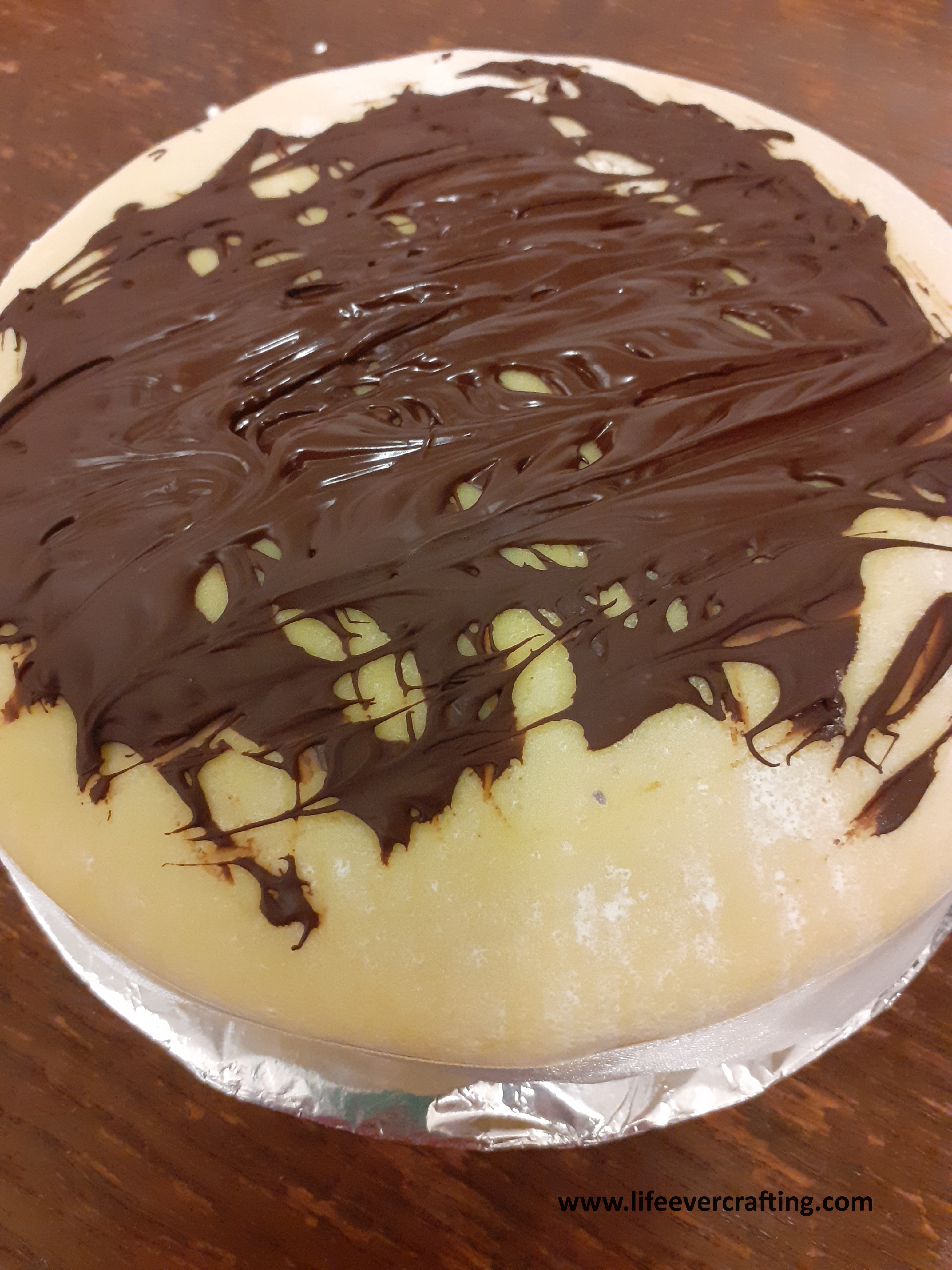 But it was a joy, very delicious; several weeks ago now. I replaced the chocolate icing with marzipan, even the layer in the middle, which I put in before it had cooled completely so it softened and squidged to the cake. Like a Simnel cake, but without baking the marzipan in it. Delia wanted it done as a single cake and then sliced in half, but I went with two layer-tins, halved the baking time, and saved myself the trouble of trying to evenly slice it in two. It seemed to work quite well, even though my tins were ever so slightly smaller than Delia said to use. I figured it was better to use the slightly too small tins to the slightly too big one. And then I melted the remainder of the chocolate to drizzle over the marzipan layer.